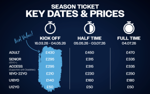 Find out more about Season Ticket Prices and Key Dates.