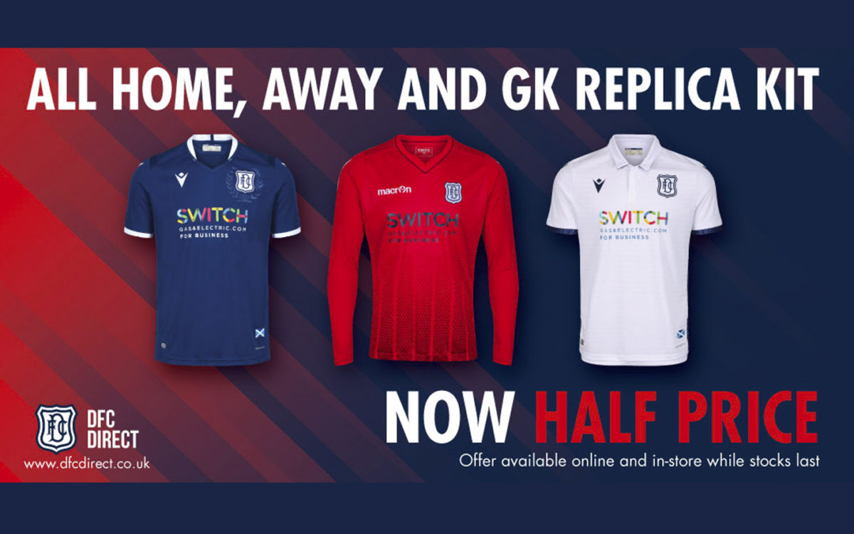 Read moreThe 2019/20 home, away and goalkeeper replica kit is now half price at Dundee Direct. Offer available online and in-store..